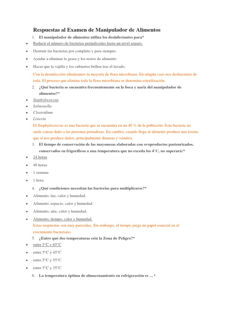 Las respuestas al examen son procesadas automáticamente y la propia web nos dirá tanto al. Examen de Manipulador de Alimentos. Para aprobar necesitar tener la mitad de respuestas correctas. Examen de manipulador de alimentos en Inglés.